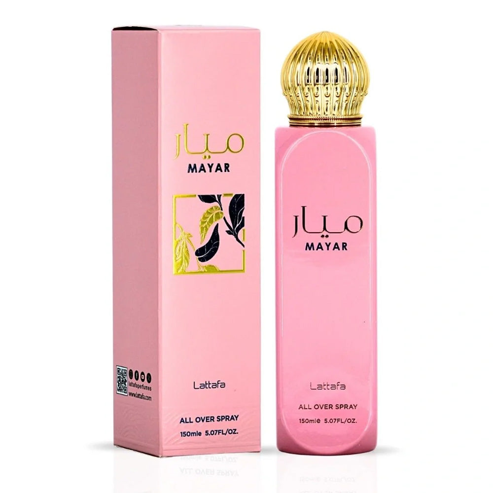 Step into a world of elegance and charm with Lattafa Mayar All-Over Body Spray for Ladies. This 5.07 oz (150 mL) fragrance is a radiant blend of soft florals and juicy fruits, designed to leave a lasting impression wherever you go. Created by the renowned Middle Eastern fragrance house Lattafa, Mayar captures the beauty of femininity in every spritz.